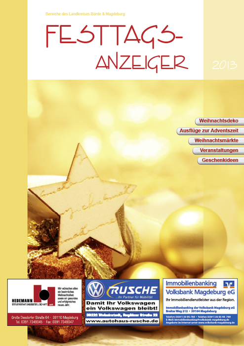 • regionale Magazine, z. B. saisonale Verbraucheranzeiger (Osterzeitschrift, Pfingsttipp, Festtagsanzeiger)